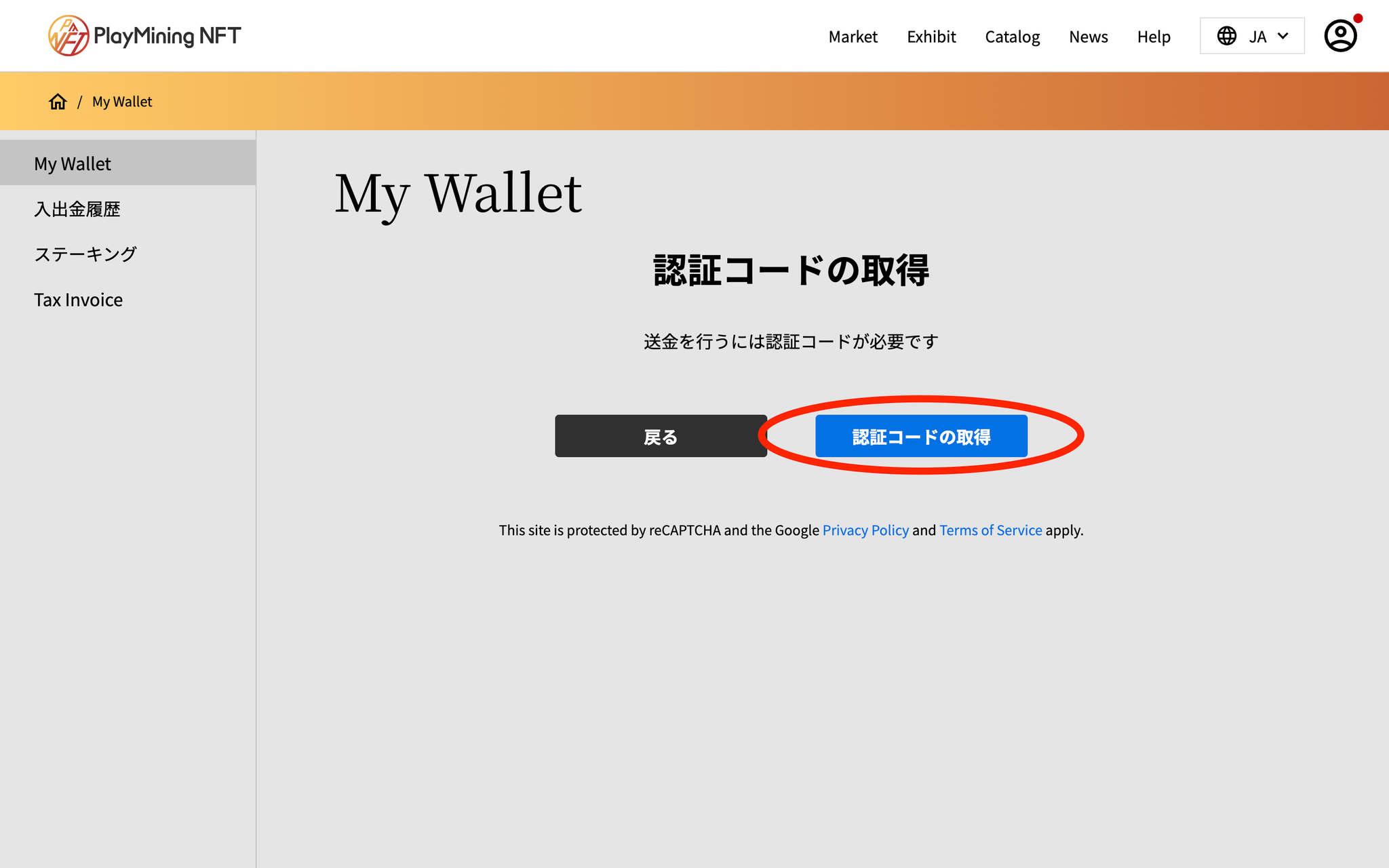 ログイン後、ヘッダーメニューの「Wallet」から「My Wallet」を選択してください。