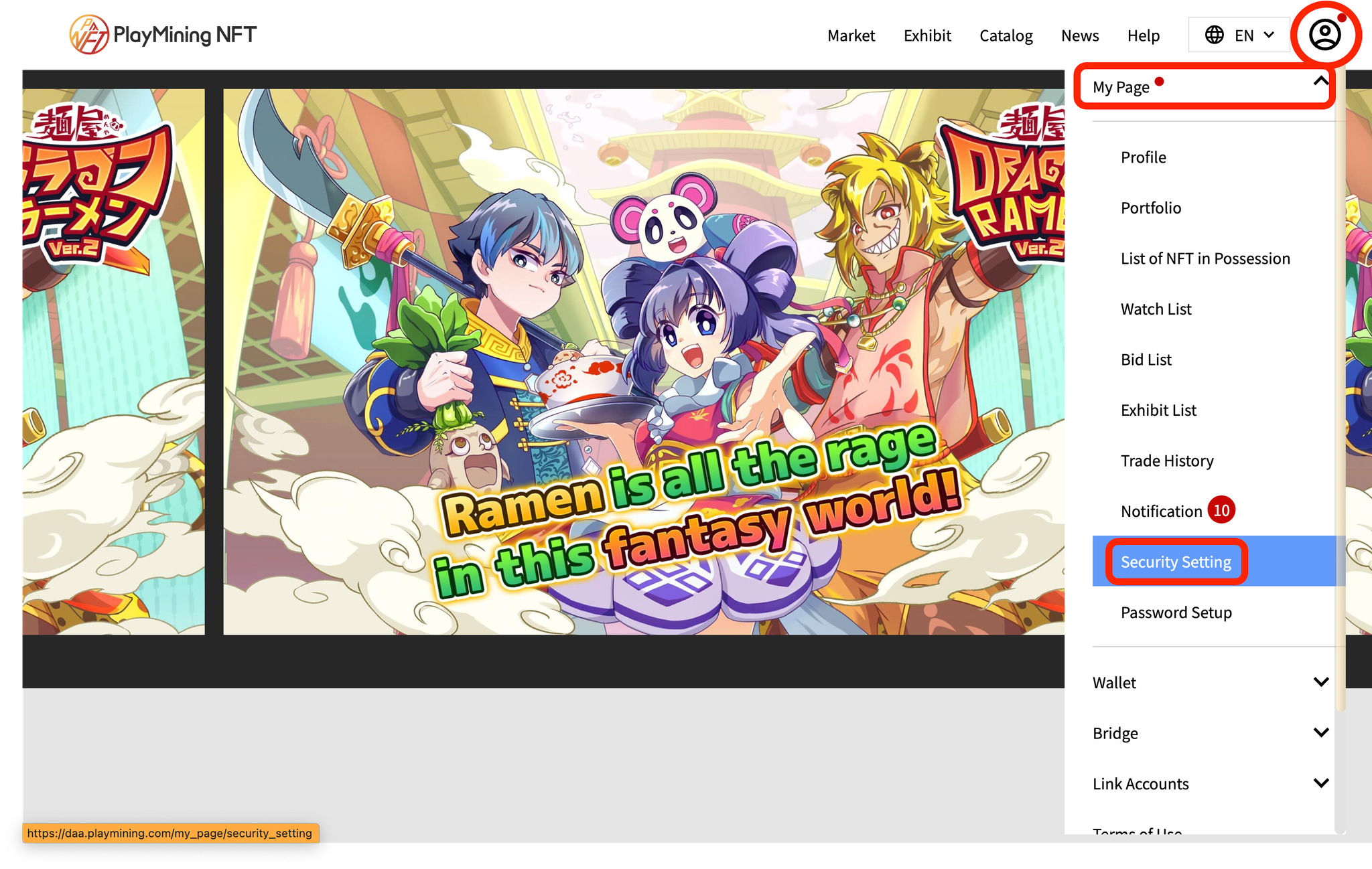 *Note: To change your one-time code settings, go to "My Page" > "Security Settings" in PlayMining NFT.